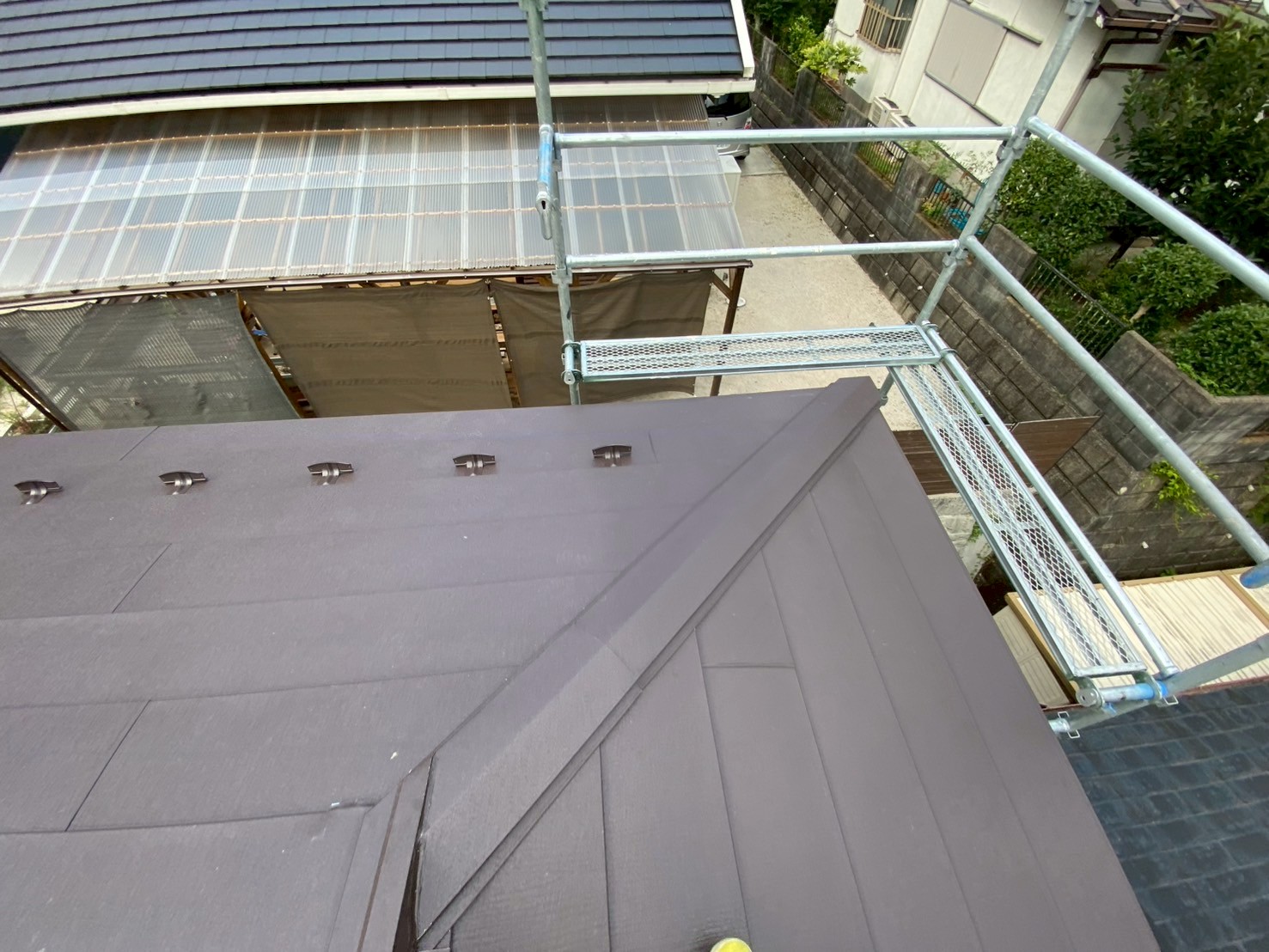 今回は、既存のスレート屋根の上に新しい屋根材(スーパーガルテクト)を被せるカバー工法を行いました。