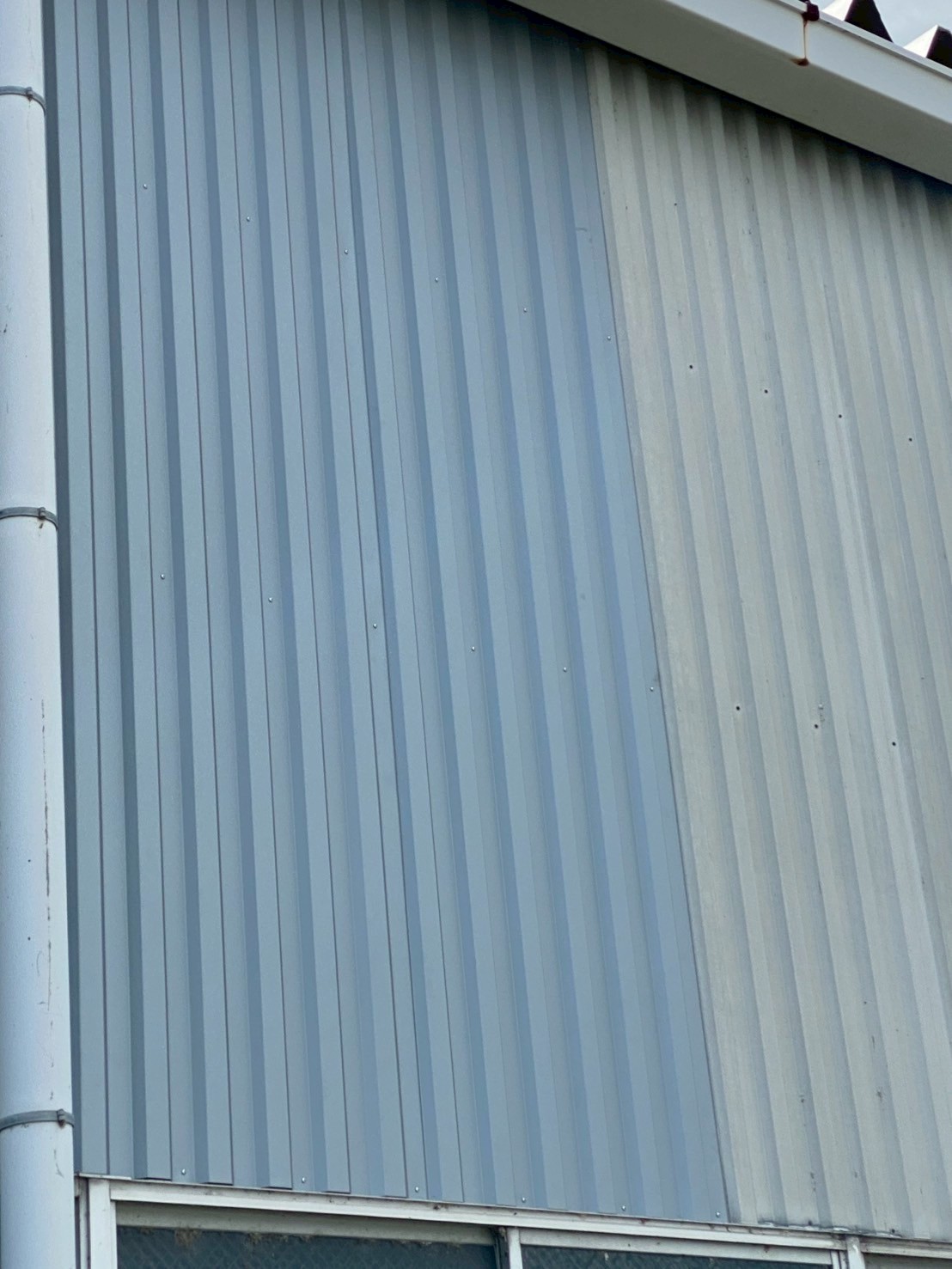 倉庫の外壁部分の角波を一部張り替えさせていただきました。