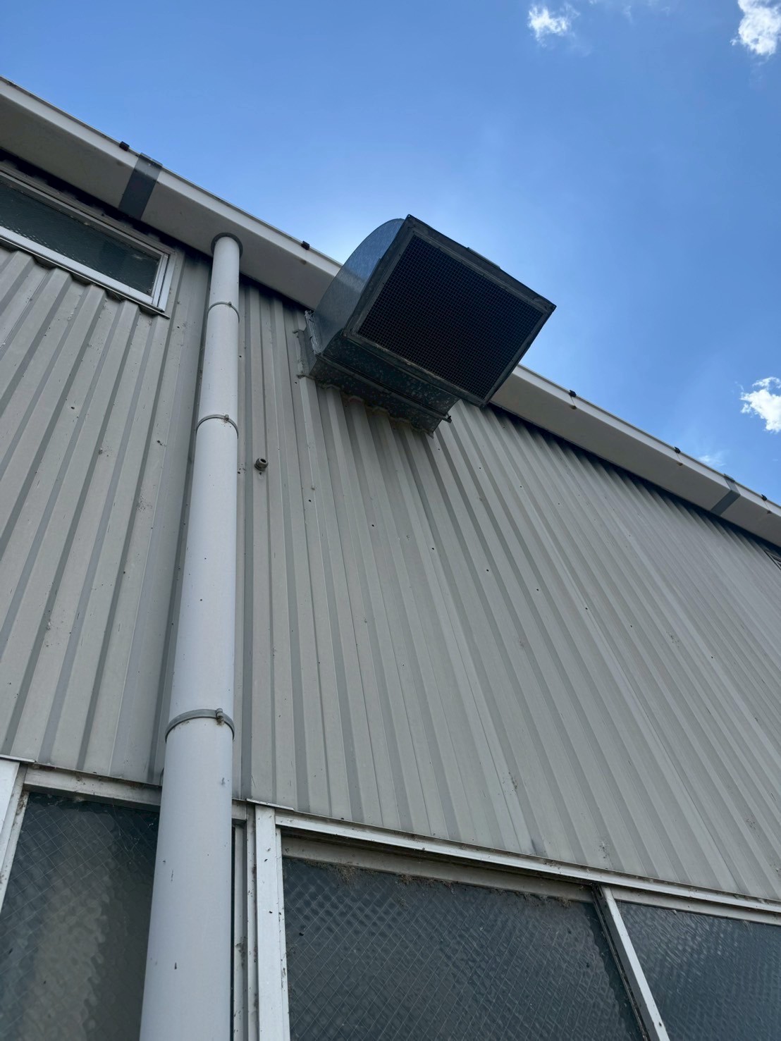 滋賀県大津市のおかげで「ダクトの撤去に伴って、外壁に穴が空いてしまうので、その箇所の角波を張り替えて欲しい」とのご依頼をいただきました。